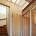 三世代が快適に住まうため、玄関と階段を中心に諸室をツリー状に配置して、家族の団らんとプライバシーを両立した。暗くなりがちな中央部分にトップライトを設け、光床で1階まで光を届けている。構造的に弱かった下屋部分を梁と床で繋ぎ、上部をルーフバルコニーとすることで、開放感のある室内空間を実現した。