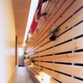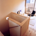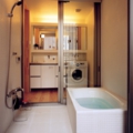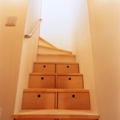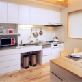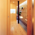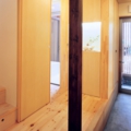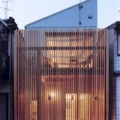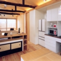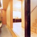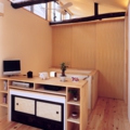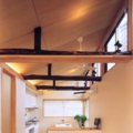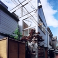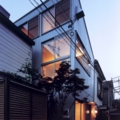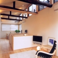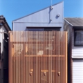 築50年ながら借地で立て替えが認められないため、リフォームを決意。1階には通り土間を設け、裏庭への通路を兼ねた趣味のサーフボードの収納場所として有効利用を図った。日当りが悪いため2階にLDKを設け、屋根形状を変えて高窓から太陽光を取り入れている。